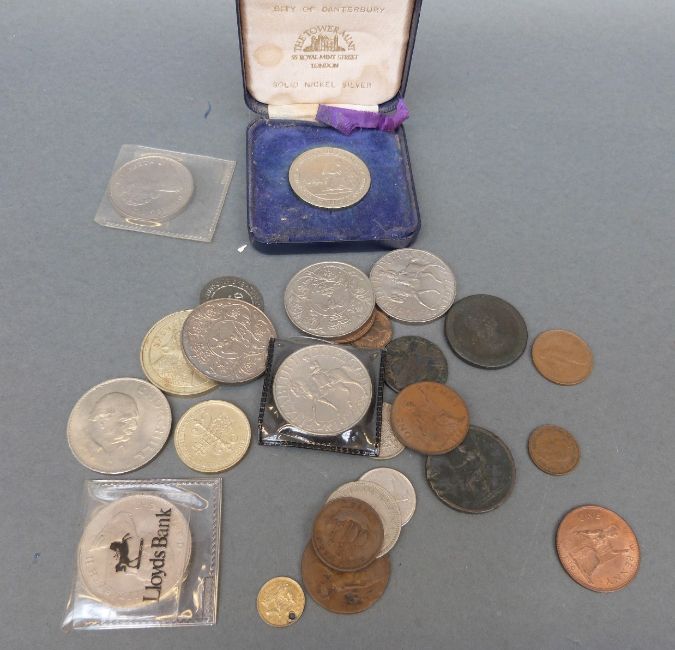 A collection of modern crowns to include cased railway commemorative example together with a small amateur coin collection George II onwards