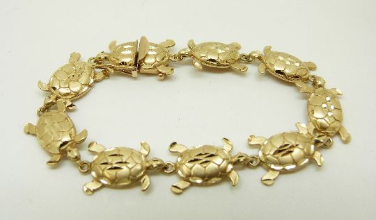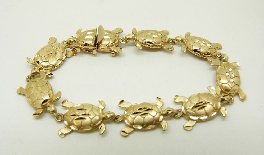 A 14k gold bracelet made up of links in the form of turtles, 17.3g