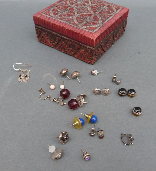 A collection of earrings including lapis lazuli, silver, Victorian earrings etc