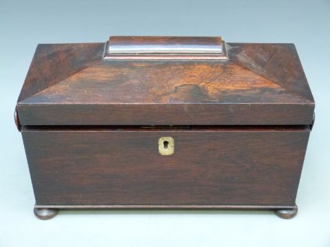 A 19thC rosewood tea two division tea caddy with hinged interior compartments and space for a mixing bowl, length 34cm, 20cm tall