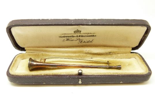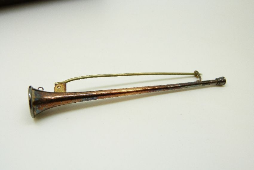 A hunting horn brooch in vintage Bristol Goldsmiths box