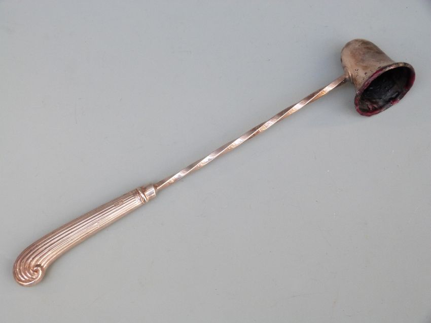 Hallmarked silver candle snuffer with pistol grip and rope twist stem, maker Whitehill Silver and Plate Company, length 22cm, 34g