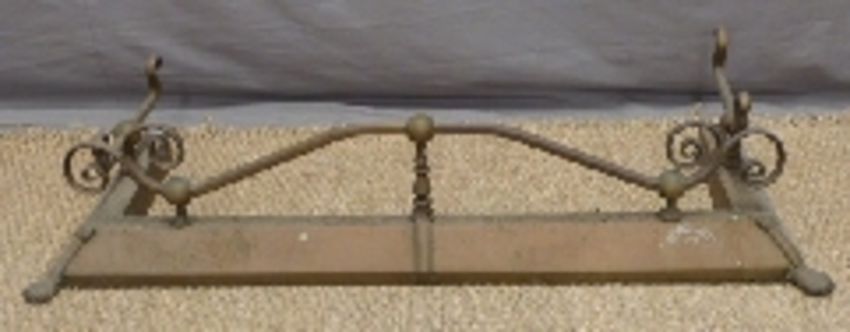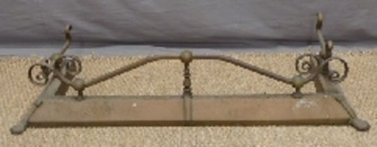 An ornate brass fire fender raised on lion pad feet, W115 x D40cm