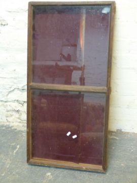 A glazed pine display case with velvet lining, L92 x W42cm