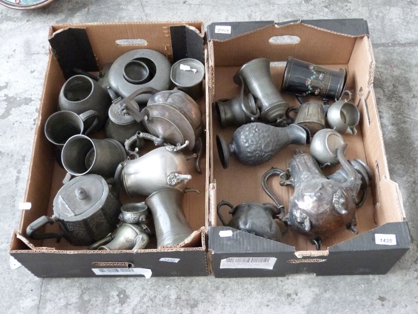 A quantity of pewter including teaware, salts, jugs etc
