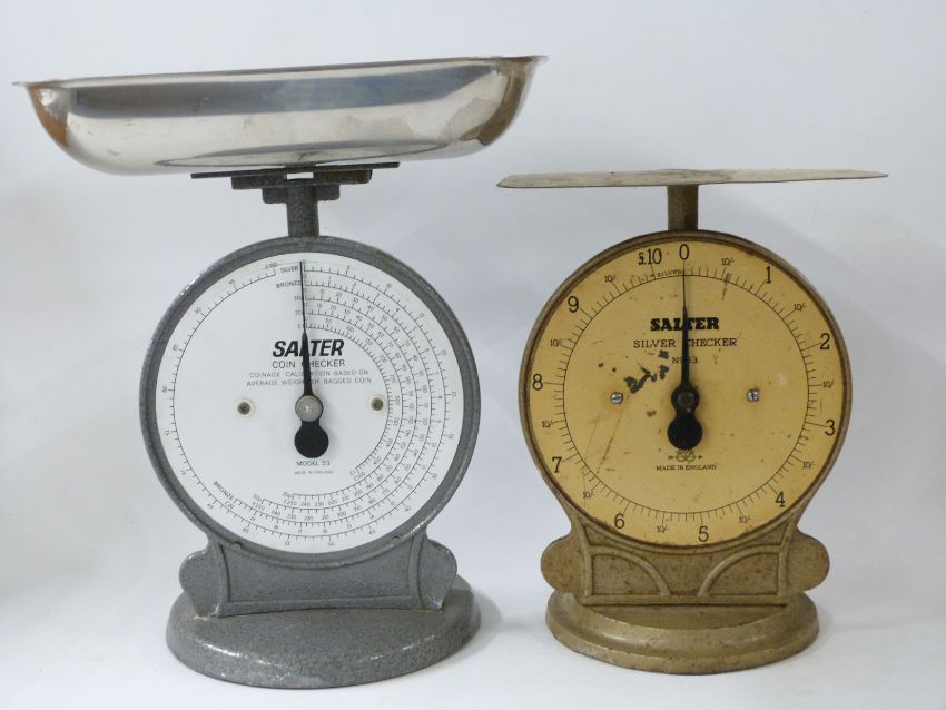 Two Salter coin checker scales, one No 53 silver checker the other coin checker model 53