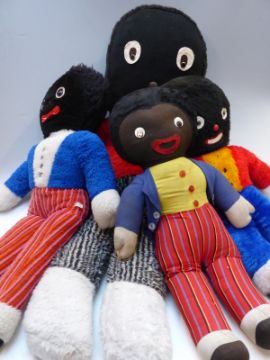Four vintage golly soft toys including 1960s example, largest 117cm