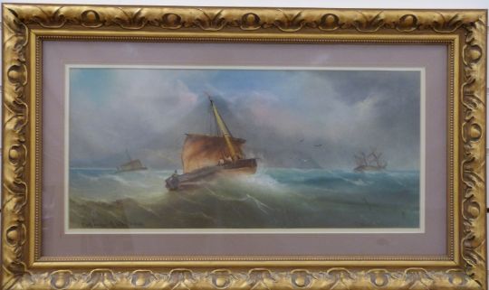 B Ward pastel seascape 'Deal Lugger off to the Wash'', signed and titled to lower edge, 29cm x 57cm
