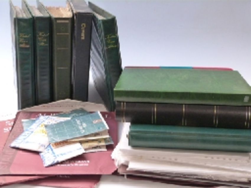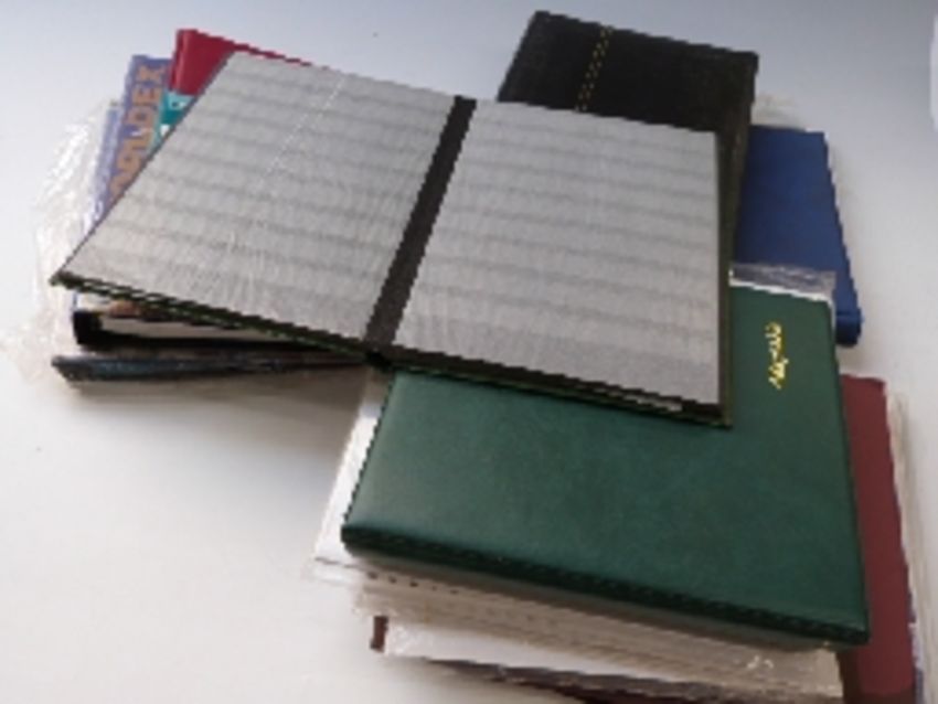 Five albums of first day covers and a box of unused albums, stockbooks and album leaves