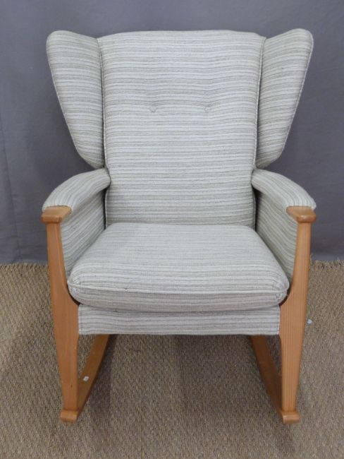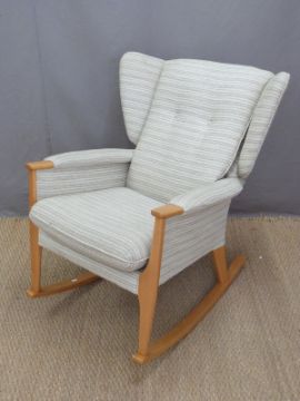 Parker Knoll wing back rocking chair, model 188-1126, upholstered in Aroma fabric