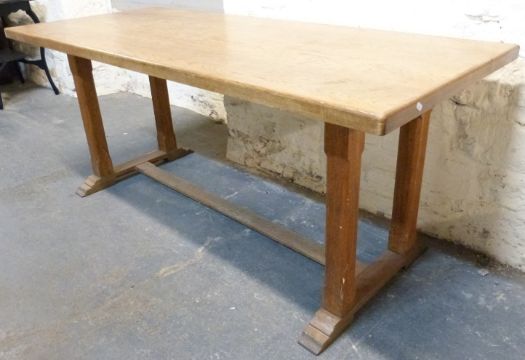 An oak refectory table with bevelled supports and stepped base, W182 x D80 x H78cm