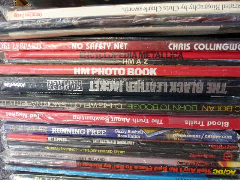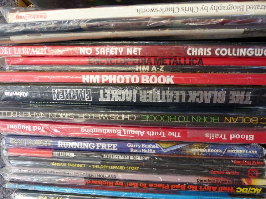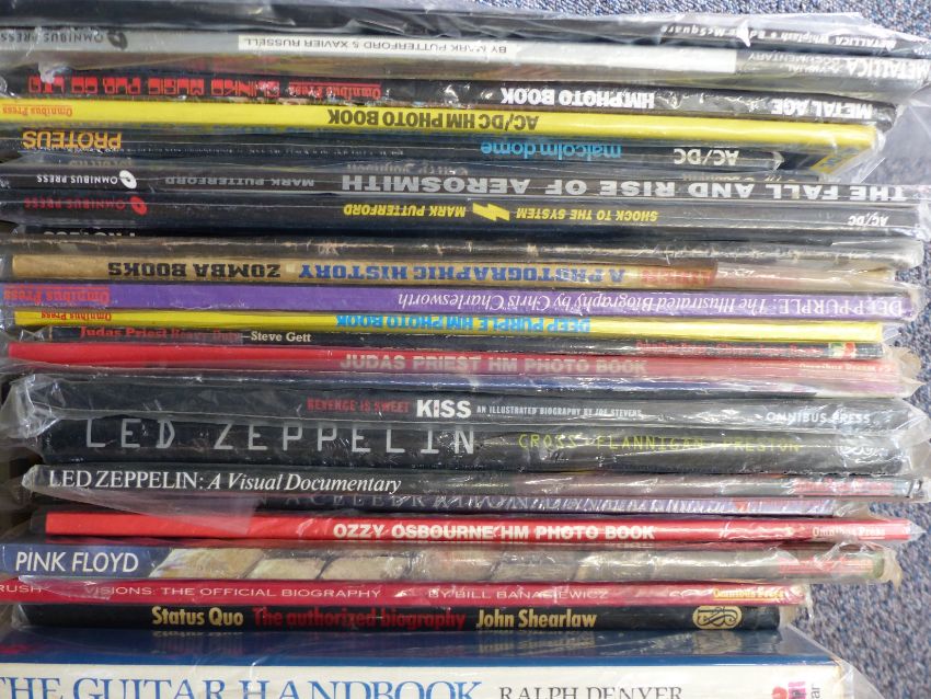 A collection of rock books, subjects include Led Zeppelin, Pink Floyd, Marc Bolan, Slade, AC/DC etc