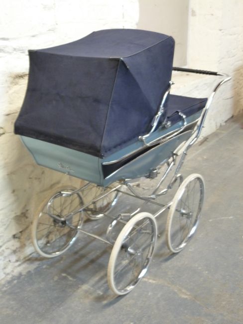 Silver Cross vintage pram in two tone blue with hood and cover, 92cm approx