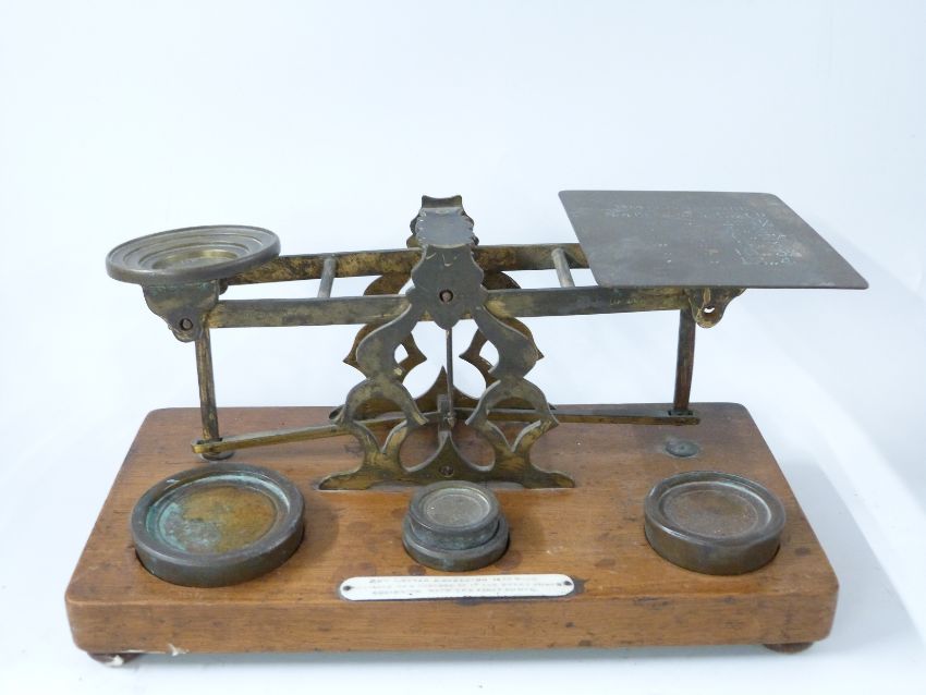 S.Mordan & Co brass postage scale with rates to pan