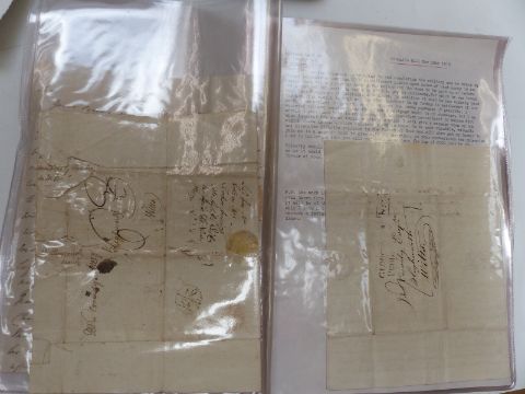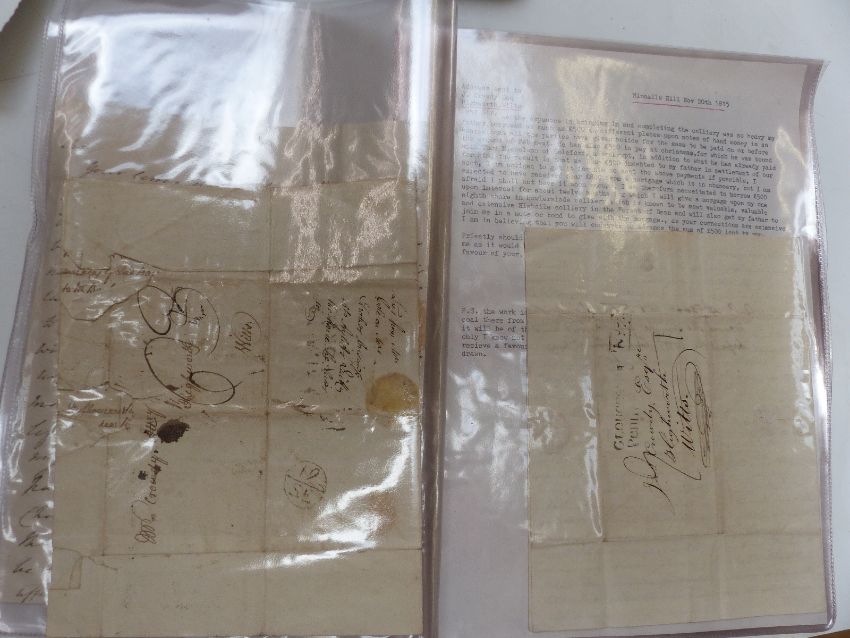 Three pre-post letters including interesting transcript of letters dated Nov 20th 1815 referring to financial matters concerning The Howerslade Colliery in the Forest of Dean. Also a postcard album of foreign, mainly Egyptian postcards and a bag of sundry loose postcards