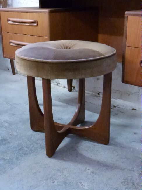 Retro G Plan dressing table with mirror back, W145 x D46 x H75cm together with circular stool