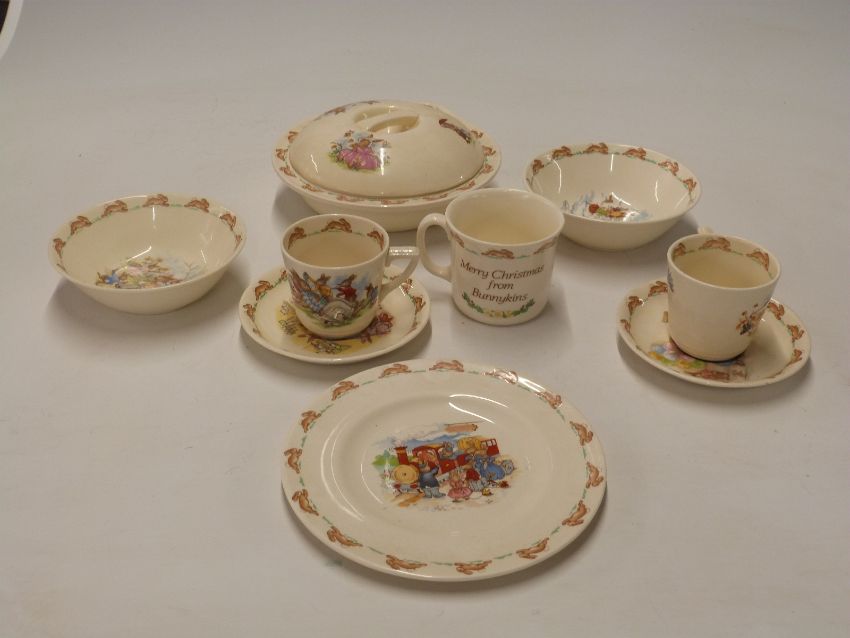Royal Doulton Bunnykins ware including a baby warming dish and cover