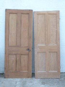 Two vintage pine doors, 80 x 200cm and 74 x 195cm