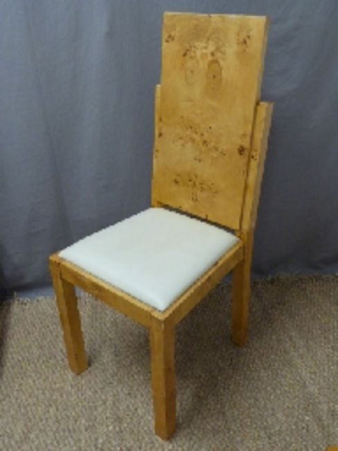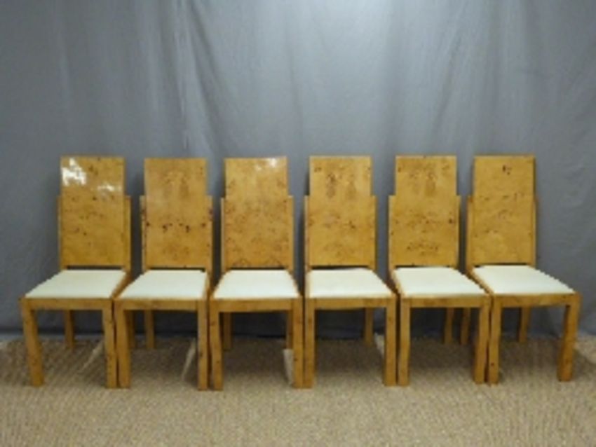 A set of six Art Deco style birds eye maple upholstered dining chairs