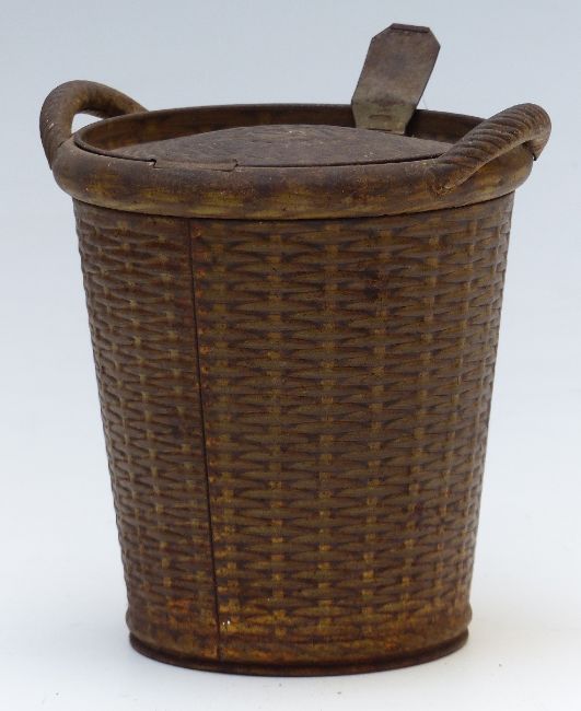 Huntley and Palmer biscuit tin in the shape of a twin handled basket, H17cm