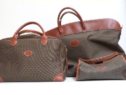 Longchamps matched set of three bags comprising weekend bag, vanity case and toilet bag