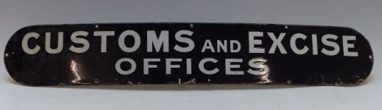 A late 19th / 20thC enamel Customs & Excise sign, believed to be ex Stroud office, 16 x 92cm