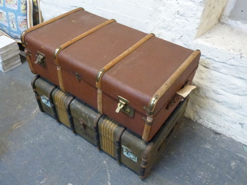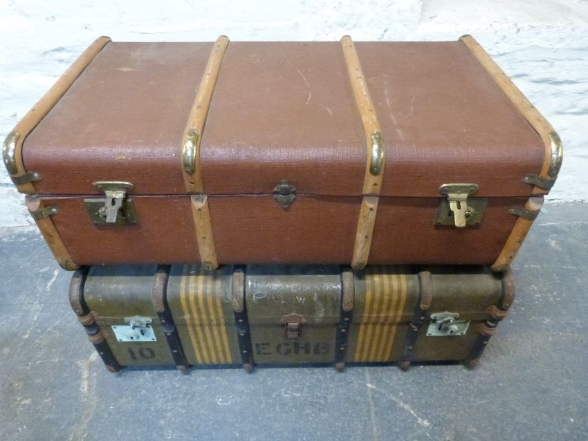 Two ash bound trunks, one with interior lift out tray, 50 x 90cm