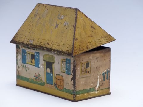 The Lucie Attwell 'Kiddibics' biscuit tin and moneybox, H18cm, W21cm