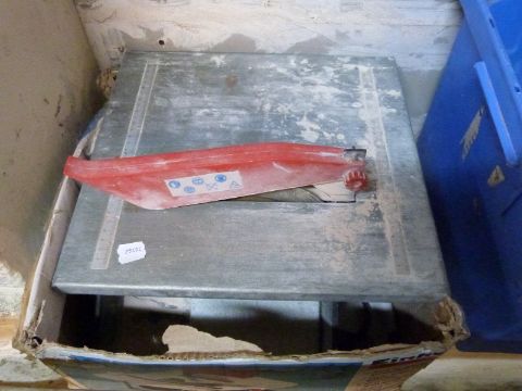 A quantity of tools to include tile saw, chisel set etc and a portable record player