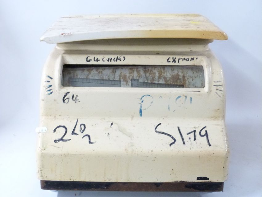 Two sets of Avery shop scales with drum type dial giving price