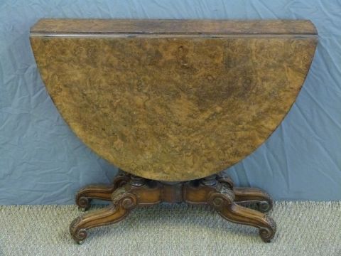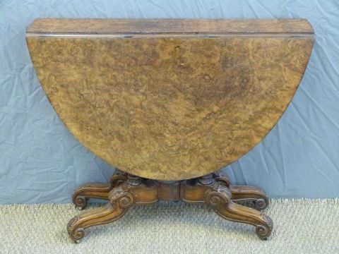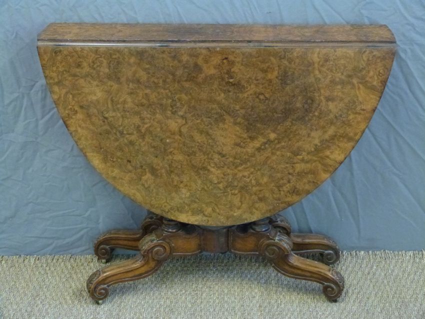 A 19thC burr walnut Sutherland or occasional table, diameter 87 x H72cm