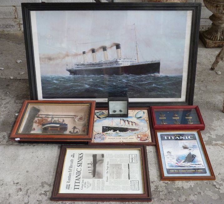 Large Titanic print, smaller Titanic pictures, Titanic 'Coal from the Wreck' display and a nautical diorama