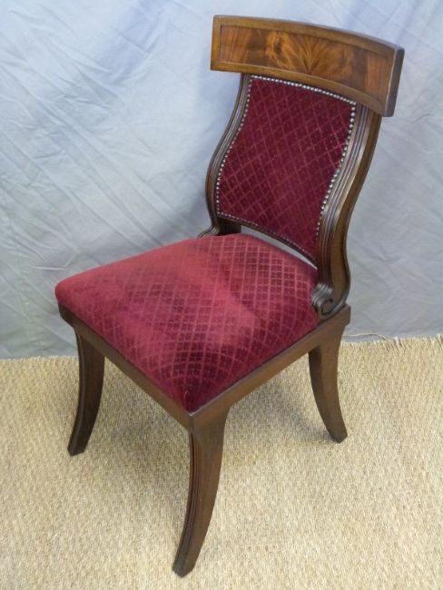 Set of eight empire style mahogany upholstered dining chairs