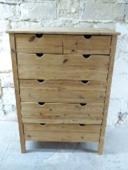 A pine chest of two over four drawers with finger apertures for opening, W90 x D52 x H124cm