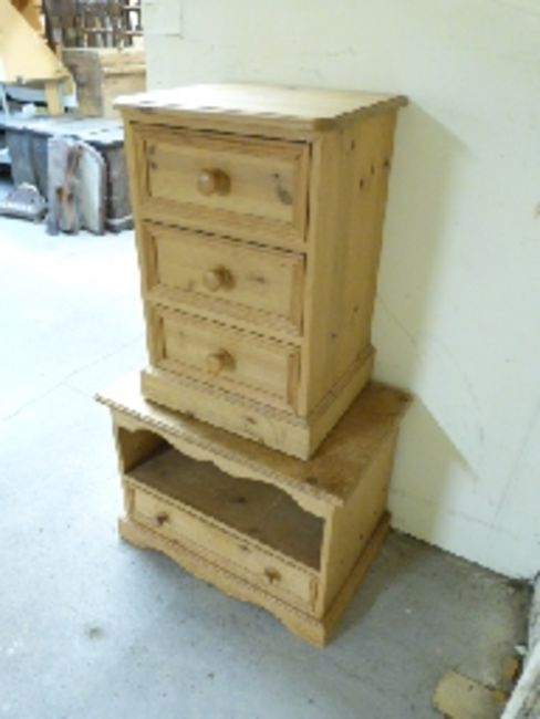 Small pine chest of drawers and a pine unit, W44 x D37 x H66cm