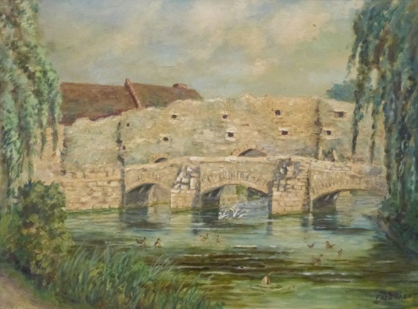 Floyd Nash oil on board 'The Abbotts' Bridge, Bury St Edmonds', signed lower right, 44 x 59cm