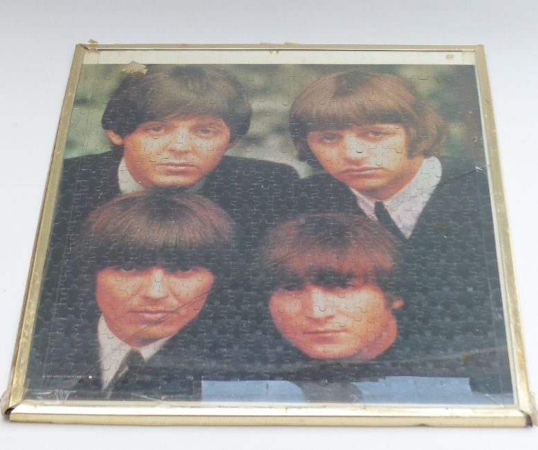 Beatles Sculpture Puzzles with other jigsaws including a framed example with three musical figures 'The Beagles'