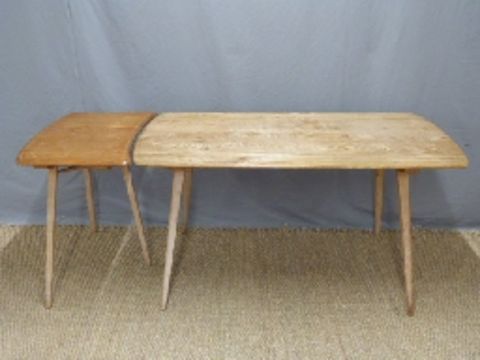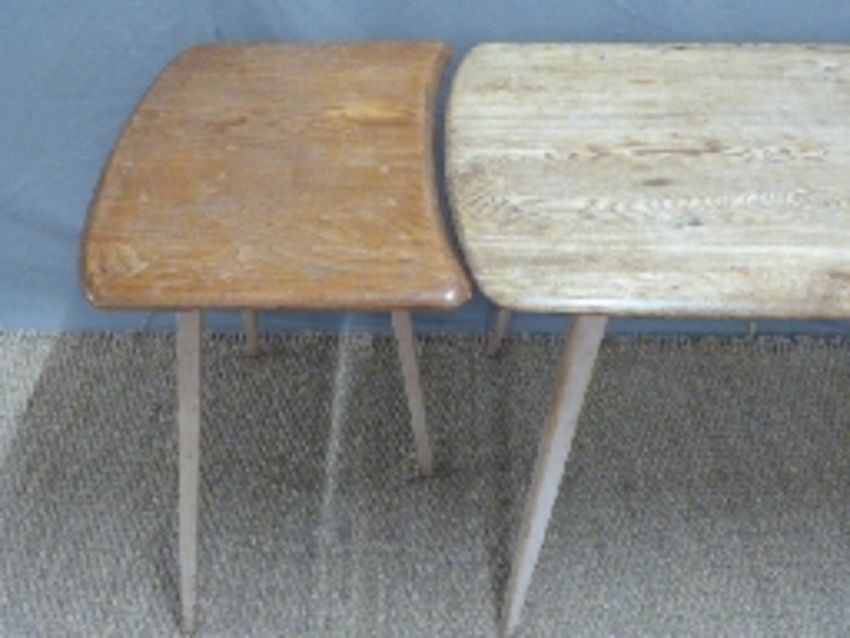 Retro Ercol light elm dining table with additional extensions, max W183 x D72 x H71cm