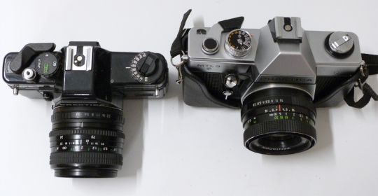 Praktica MTL3 SLR camera with Pentacon 1.8/50 lens and Praktica BLS camera electronic with Pentacon 3.5 - 4.5/35 =70 lens