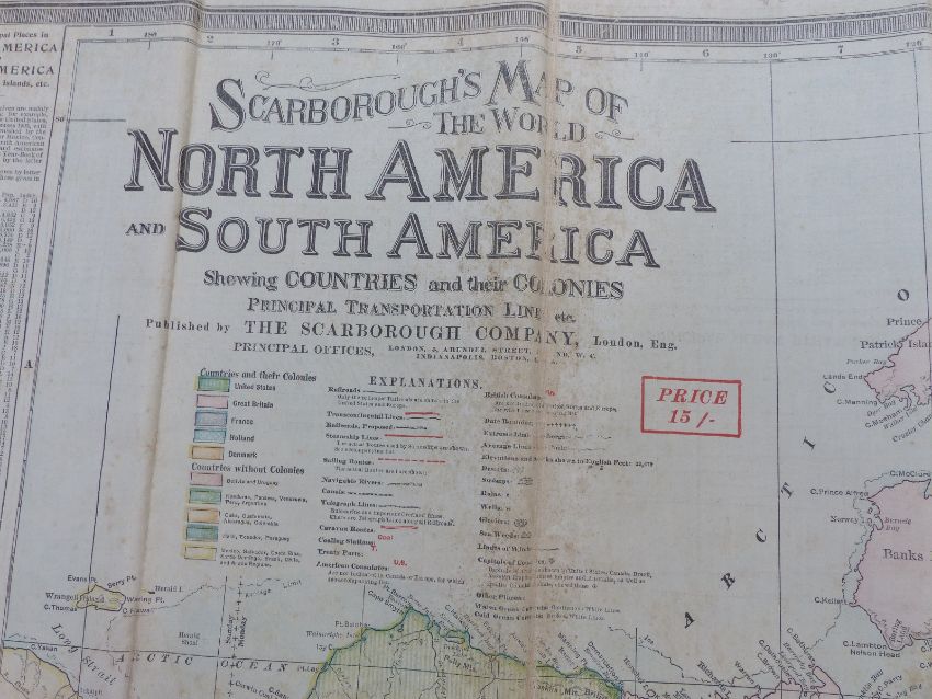 Scarboroughs Map of North and South America with Europe, Asia, Africa and Australia verso, 100 x 102cm