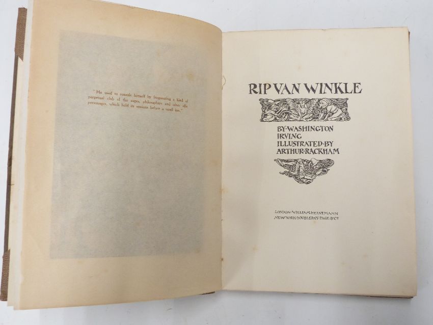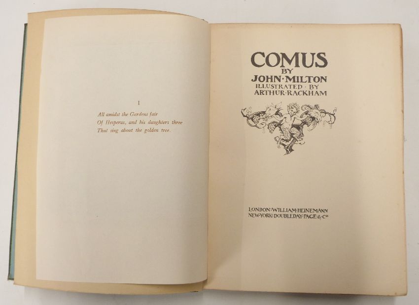 [Arthur Rackham] Comus by John Milton illustrated by Arthur Rackham, William Heinemann (1921) tipped-in coloured plates with lettered guards, together with Rip Van Winkle by Washington Irving with illustrations in colour and black & white by Arthur Rackham both with decorated endpapers (2)