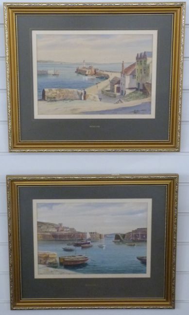 A D Bell pair of watercolours 'Mousehole' and 'Newlyn' both signed and dated lower right, one 1954, the other 1959