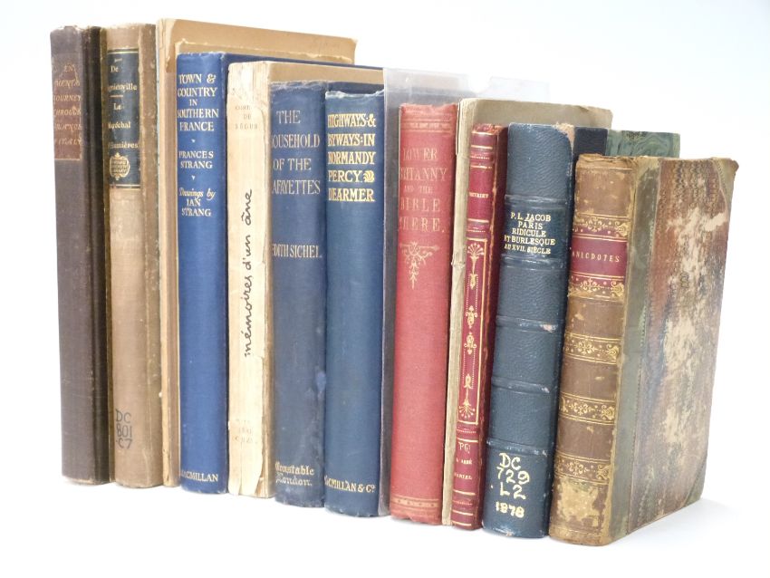 Laurence Sterne A Sentimental Journey through France & Italy 1905 Riverside Press Limited edition, Lower Brittany 1863, Normandy illustrated 1910, Charles Estienne et Le Theatre 1928 Signed, Francois Ganshof L'Histoire De L'Empire signed, L'Abbe Daniel, Paris by Paul Lacroix 1878, Lafayelles 1904 (15)