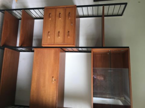 Ladderax large wall unit with an arrangement of cupboards and drawers, height 200cm