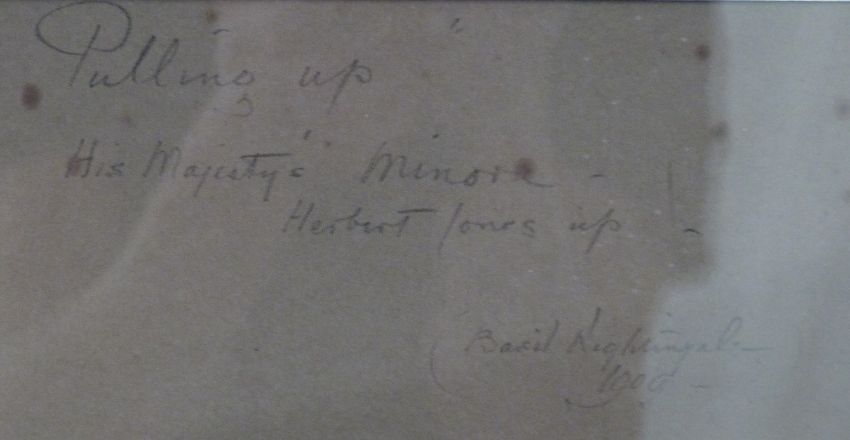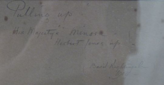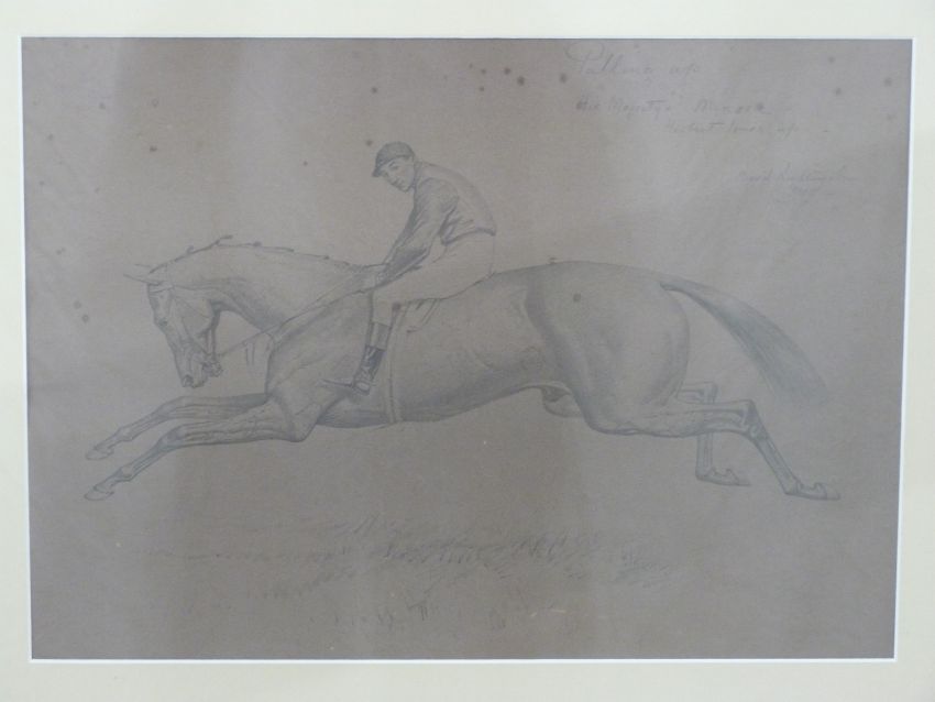 Basil Nightingale sketch 'Pulling Up, His Majesty's Minoru Herbert Jones Up', signed and dated 1909 top right, approximately 34 x 48cm