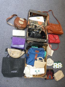 A large collection of vintage handbags, gloves, fans etc