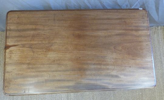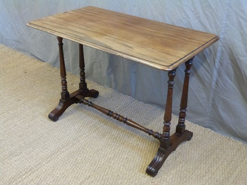 A 19thC mahogany sofa table raised on four turned supports united by a tapered stretcher, W101 x D59 x H71cm