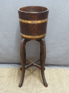 A coopered Lister jardiniere on stand, diameter 31 x H86cm