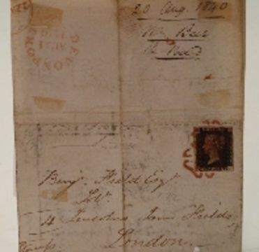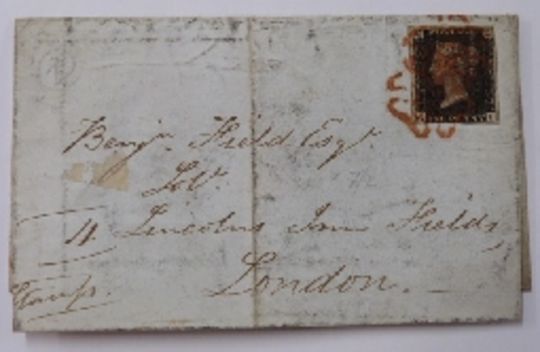 A 1d black on cover G.D. red Maltese Cross cancellation, postmarked August 21 1840