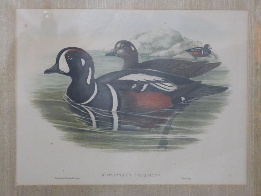 After J. Gould coloured etching of three ducks 'Historionicus Torquatus' 33 x 43cm